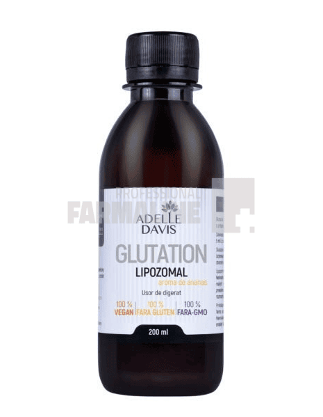 DescriereEste principalul antioxidant[1] găsit în corpul uman și este prezent în toate țesuturile umane, cu concentrații deosebit de mari în ficat. Înțelegem de aici că rolul crucial al glutationului este funcția de detoxifiere a ficatului.Ca antioxidant, poate lupta împotriva radicalilor liberi[2] și poate extrage toxinele din organism, cum ar fi mercurul și alte metale grele[3] prevenind daunele cauzate de prezența acestora, precum îmbătrânirea prematură, oboseala cronică, afecțiunile intestinale și problemele neurodegenerative.Datorită alimentelor noastre care conțin prea multe substanțe nedorite, mediului poluat, stresului, medicamentelor chimice și stilului de viață nesănătos în general, organismul nu poate produce glutation in cantitati suficiente si de aceea trebuie suplimentat.Glutationul ajută la:- cresterea energiei;- îmbunătățirea tonusului muscular;- detoxifiere a ficatului și a rinichilor;- îmbunătățirea concentrării mentale;- îmbunătățirea calității somnului;- îmbunătățirea calității pielii;- îmbunătățirea metabolismului tuturor celulelor din organism și previne astfel îmbătrânirea prematură a acestora;- creșterea performanței atletice;- reducerea efectelor stresului.CompozitieL-glutation, apă purificată, lecitină de floarea soarelui nemodificată genetic, sorbat de potasiu, aromă naturală: ananas, ștevie.Mod de administrarePortia zilnica (adult): 2 x 1 lingurita pe zi (2 x 5 ml). Agitati bine inainte de folosire.ProducatorAdelle Davis Mod de prezentareFlacon 200 ml