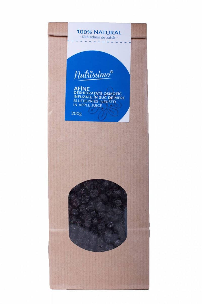 Afine infuzate in suc de mere, fara zahar, 200g – Nutrissimo