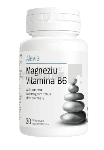 DescriereMagneziul menține funcția normală musculară și nervoasă și favorizează dezvoltarea unor oase puternice. Vitamina B6 este implicată în numeroase procese fiziologice și favorizează absorbția și menținerea magneziului în organism.Efecte:• Functionarea normala a sistemului nervos;• Reducerea oboselii si a extenuarii;• Mentinerea sanatatii psihice;• Metabolismul energetic normal;• Magneziu contribuie la procesul de diviziune celulara;• Vitamina B6 contribuie la formarea normala a globulelor rosii si la reglarea activitatii hormonale.CompozitieMagneziu (lactat de magneziu dihidrat 470mg) 47mg, Vitamina B6 4,2mg.Mod de administrareCate 1 comprimat pe zi.ProducatorAleviaMod de prezentareFlacon 30 comprimate