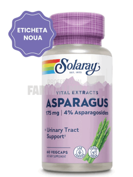 DescriereAsparagus ajuta la functionarea normala a tractului urinar si a ficatului. Produsul contine extract standardizat de Sparanghel (planta intreaga si radacina), ingredient recunoscut de Comisia Germana E ca suport natural pentru sanatatea sistemului urinar.Produsul prezinta o asociere optima de asparagozide cu radacina si lastari de Asparagus pentru potentarea efectelor benefice si a biodisponibilitatii.Asparagus contribuie la:-functionarea normala a tractului urinar;-efect alcalinizant;-ajuta la reducerea nivelului de acid uric;-functionarea normala a ficatului;-protejeaza celulele hepatice si reduce efectele neplacute ale consumului de alcool;-sustine procesele de detoxifiere hepatica;-imbunatateste conversia amoniacului in uree si eliminarea acesteia pe cale renala;-imbunatatirea starii de bine.CompozitieSparanghel (Asparagus officinalis) – extract standardizat din radacina, garantat 7mg [4%] asparozide calculate cu metoda cromatografica de inalta performanta HPLC 175 mg, Sparanghel (Asparagus officinalis) – planta intreaga 200 mg.Mod de administrareCate 1 capsula de 1-2 ori/zi la masa sau conform recomandarii consultantului de specialitate.A nu se administra persoanelor cu afectiuni renale.ProducatorSecomMod de prezentareFlacon cu 60 capsule