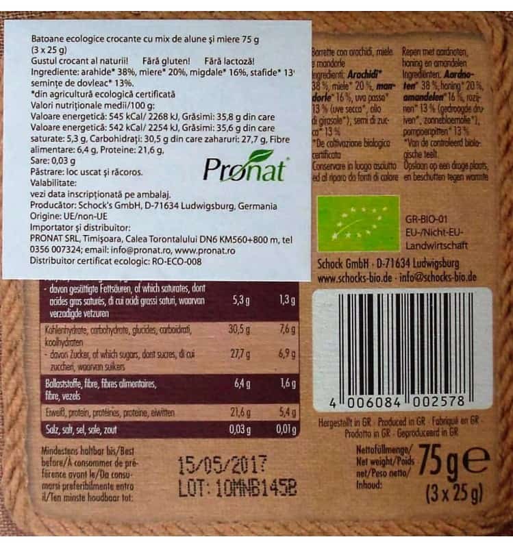 Batoane crocante cu afine rosii si migdale, eco-bio, 3x25g, Schock ‘s Gustul crocant al naturii! Fără gluten! Batoanele BIO crocante cu afine şi migdale au, pe lângă aroma deosebită a migdalelor şi afinelor, un conţinut bogat de calciu, magneziu şi acid