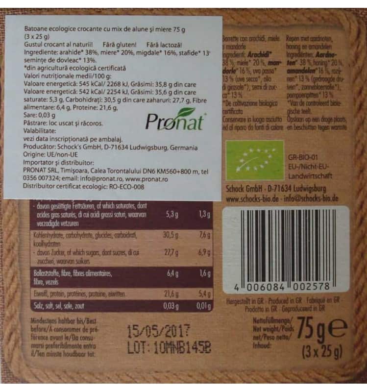 Batoane crocante cu mix de alune si miere. eco-bio, 3×25 g, Schock ‘s
