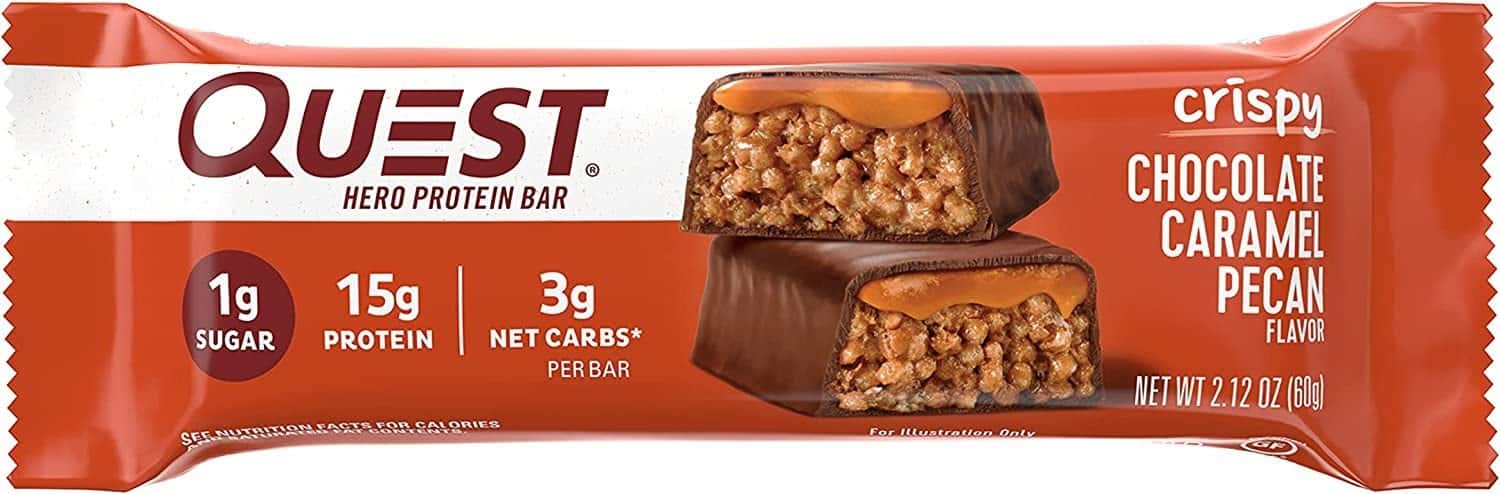 Suplimente alimentare, Baton proteic cu aroma de ciocolata nuci pecan si caramel Hero Crispy, 60g, Quest