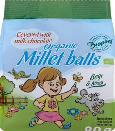 Bilute din mei expandat invelite in ciocolata, fara gluten, eco-bio, 80g, Biopont -bio, fara gluten- O gustare delicioasa pentru cei mici si nu numai, crocanta si atragatoare, fara gluten Ingrediente: min. 45% ciocolata cu lapte* (zahar din trestie*, gra