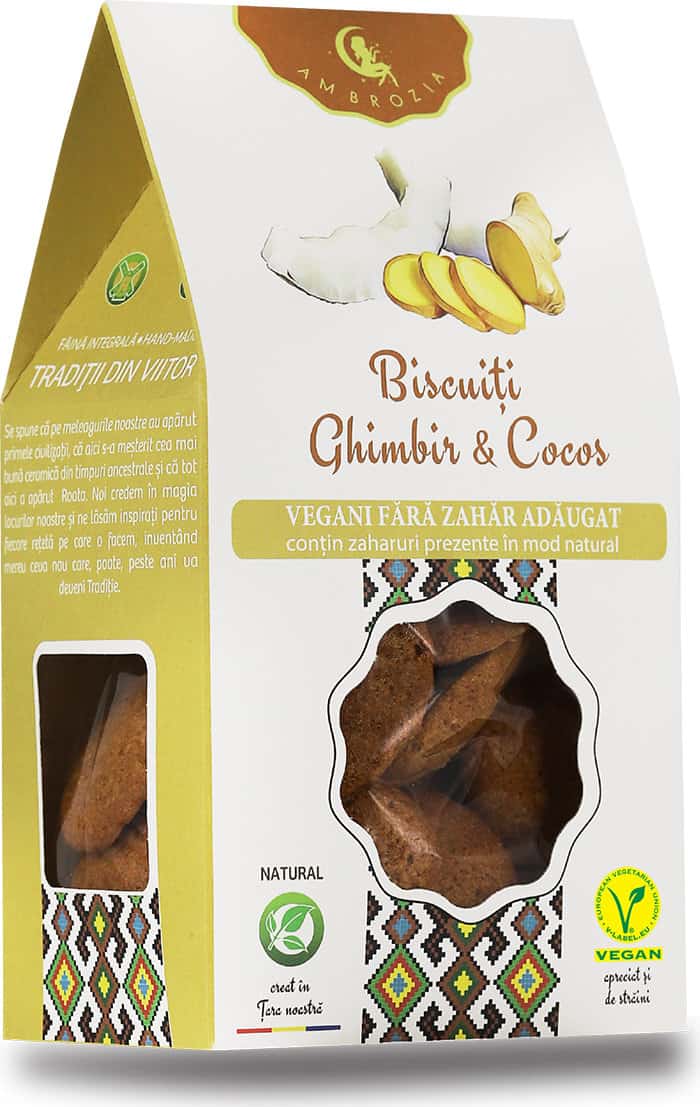 Dulciuri naturiste, Biscuiti cu ghimbir si cocos, 130g, Ambrozia