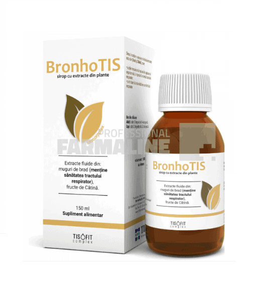 DescriereBronhoTIS conține ingrediente active din plante cu proprietăți complementare și sinergice care mențin sănătatea tractului respirator.CompozitieExtract din muguri brad, extract din fructe cătină.Extractul din muguri de brad întărește plămânii, redând calitatea vocii, susține rezistența organismului la acțiunea factorilor nefavorabili.Extractul de cătină are rol antioxidant și stimulează capacitatea naturala de apărare a organismului.Mod de administrareAdulți: câte 1 lingură de 3-4 ori pe zi.Copii peste 1 an: câte 1 linguriță de 3-4 ori pe zi.ProducatorTis FarmaceuticMod de prezentareFlacon 150 ml