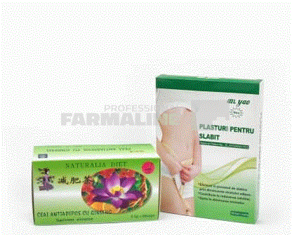 DescriereCeai antiadipos cu ginseng 30 plicuriCeaiul pentru cura de slăbire este un produs 100% natural, obținut în baza unei rețete originale din plante medicinale specifice din China, atent selecționate. Fiind înbogățit cu prețiosul fortifiant ginseng, acest ceai odată cu efectul de scădere a greutății, consumatorului, contribuie și la imbunătățirea stării lui de sănătate. Elimină grăsimea, accelerează metabolismul, reduce procentul de zahăr și grăsimi din sânge și micșorează tensiunea. Administrarea pe termen lung nu prezintă pericol de toxicitate sau efecte secundare.Plasturi pentru slabit 4 bucatiPlasturii pentru slăbit sunt eficienți în procesul de slăbire prin diminuarea stratului adiposProprietăți: – ajută în procesul de slăbire prin diminuarea stratului adipos;- contribuie la reducerea celulitei;- ajută la eliminarea toxinelor.Mod de administrareCeai antiadipos cu ginseng 30 plicuriSe pune un pliculeț de ceai intr-un pahar, se face infuzie, după 2-3 minute ceaiul se poate consuma. Se recomandă 1-2 pliculețe pe zi. Un pliculeț se poate infuza de 1-2 ori pana la decolorarea completă a infuziei.Plasturi pentru slabit 4 bucatiSe dezlipește folia protectoare și se aplică plasturele, în funcție de necesitate, pe urmăoarele zone: abdomen, șolduri, partea interioară a brațului, deasupra zonei fesiere, partea exterioară a gambei, partea exterioară a coapsei. Plasturele se aplică pe pielea curată și uscată și se menține pentru o perioada de 4-6 ore. Durata unui ciclu de folosire este de 16 zile (apoi 3 zile pauză), iar un tratament complet durează 2-3 luni, în funcție de greutate.ProducatorNaturalia DietMod de prezentareCutie cu 30 plicuri + 4 plasturi