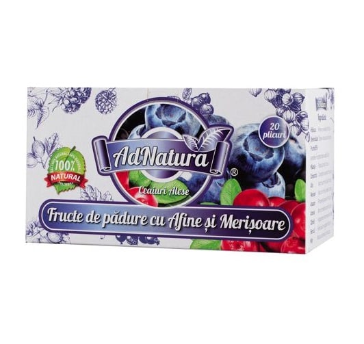 Ceai de fructe de padure cu afine si merisoare, 20 plicuri, AdNatura