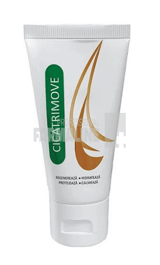 DescriereCicatrimove are proprietati regenerante care ajuta la vindecarea leziunilor pielii si se recomanda pentru prevenirea si indepartarea cicatricilor de tip hipertrofic si cheloidal, a leziunilor chirugicale, eritemelor, arsurilor solare si termice.Cicatrimove este o formula topica eficienta in regenerarea si hidratarea epidermei, cu efect protector, calmant, antiinflamator, antibacterian si decongestionant.Cicatrimove reface elasticitatea pielii printr-un complex de ingrediente recunoscute pentru efectele benefice asupra epidermei: uree, alantoina, vitamina E, bisabolol, extract de ceapa (Allium Cepa Root Extract), Extract de galbenele (Calendula Officinalis Flower Extract), Extract de musetel (Chamomilla Recutita Matricaria Flower Extract).CompozitiePetrolatum, Lanolin, Ethylhexyl palmitate, Ethanol, Aqua, Glycerin, Myristil lacate, Glyceryloleate, Urea, Pantehenol, Tocopherol, Tocopherol acetate, Allium cepa root extract, Calendula officinalis fllower extract, Allantoin, Bisabolol.Mod de administrareSe aplica de doua ori pe zi, pe pielea uscata, dupa rutina de curatare a pielii. Se poate aplica atat pe fata si buze cat si pe corp. A se evita contactul cu ochii.Acest produs este in conformitate cu legislatia in vigoare privind standardele cosmetice.ProducatorOnediaMod de prezentareFlacon 50 ml