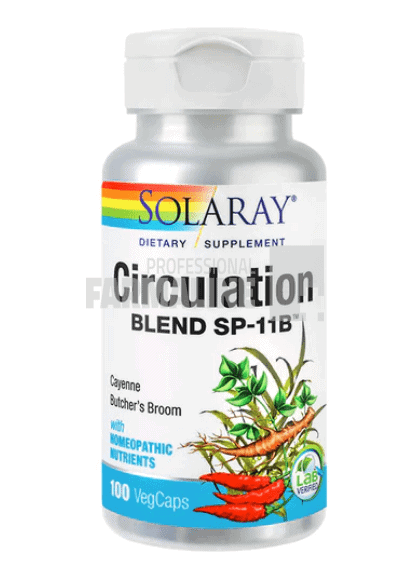 DescriereImbunatateste circulatia sanguina si limfatica.Reduce fragilitatea peretilor arteriali, venosi si capilari, imbunatateste tonusul peretilor vaselor sanguine si al valvelor venoase, mentine integritatea peretilor arteriali si venosi prin inhibarea elastazei.Reduce inflamatiile arteriale si venoase.Antitrombotic: reduce coagularea si formarea trombilor arteriali si venosi, descompune trombii formati.CompozitieArdei-iute (Capsicum annuum)(seminte), Ghimpe (Ruscus aculeatus)(radacina), Kelp (Laminaria spp.)(planta intreaga), Gentiana (Gentiana lutea)(radacina), Ghimbir (Zingiber officinale)(radacina), Verbina (Verbena officinalis)(partea aeriana), Componente homeopate fosfat de calciu 3x.Mod de administrareCate 2 capsule de 1-3 ori/zi la masa sau conform recomandarii consultantului de specialitateProducatorSecomMod de prezentareFlacon cu 100 capsule