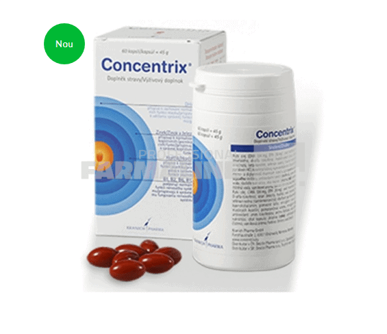 DescriereConcentrix a fost dezvoltat special pentru creșterea capacității de concentrare a copiilor și tinerilor. Concentrix ajută în cazul formelor ușoare de tulburări de concentrare și hiperactivitate.Pentru o capacitate normală de concentrare, atenție și învățare, se recomandă o dietă sănătoasă, în care trebuie să existe un echilibru între acizii grași esențiali omega-3 și omega-6, pentru că acizii omega-3 reduc inflamația și anumiți acizi omega-6 o produc. Studiile arată că alimentația modernă, cu mici excepții este foarte dezechilibrată în ceea ce privește consumul de acizi grași omega-3 și omega-6. Se consumă de peste 15 ori mai mult acizi omega-6, decât omega-3.Compozitie- Acizi grași omega-3/-6;- Zinc;- Magneziu;- Fier;- Vitaminele B1, B2, B6 și B12;Compoziția Concentrix se bazează pe cercetările producătorului și a fost testată. Acizii grași omega-3/-6, ca și ingredient principal, sunt de cea mai bună calitate.Mod de administrareConcentrix este disponibil în capsule mici, ușor de înghițit. Noua aromă de portocale le place chiar și copiilor mici.În caz de dificultăți la înghițire, capsula poate fi mestecată sau conținutul poate fi stors și amestecat în mâncare. Aici, de asemenea, se va elibera aroma de portocale. Pentru copiii până la 10 ani se recomandă o capsulă dimineața și o capsulă seara, în timpul mesei sau imediat după masă. Doza recomandată pentru copiii peste 10 ani și adulți este de două capsule dimineața și două seara. Capsulele trebuie înghițite cu o cantitate suficientă de lichid. Producator Desitin Mod de prezentareCutie cu 60 capsule