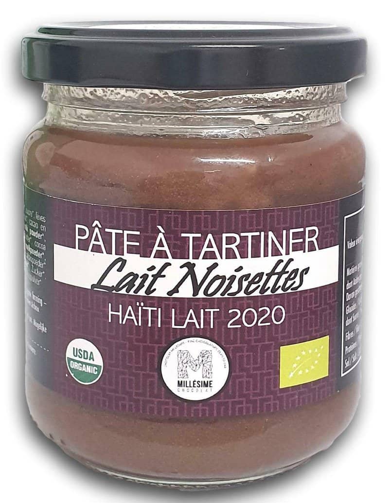 Crema de ciocolata belgiana cu alune de padure si lapte, artizanala, Haiti, eco-bio, 200g – Millesime Savureaza si incanta-ti gusturile cu aceasta crema tartinabila de ciocolata cu lapte artizanala fabricata in ciocolateria Millésime Chocolat din Seraing