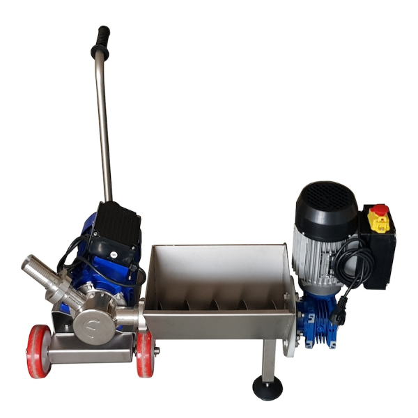 Destinata transferului de pulpa de la Desamburitor la Cazanul de fierbere. Pompa are rotor flexibil. Cuva are un snec ce impinge pulpa in pompa. Cuva si turbina pompei sunt din inox. Diametru intrare/iesire = 40 mm.