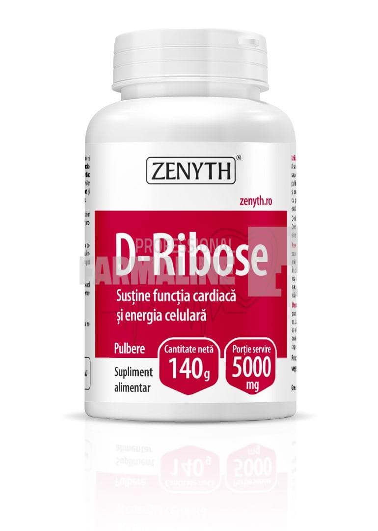 DescriereSupliment alimentar, recomandat adulților și vârstnicilor pentru susținerea funcției cardiace, funcționarea normală a mușchiului cardiac și a sistemului muscular, precum și sportivilor pentru îmbunătățirea rezistenței la efort și creșterea nivelului de energie în organism.D-riboza este o componentă de bază a acizilor ARN și ADN, dar și un factor important în producerea de ATP (adenozin trifosfat).ATP este responsabil cu energia internă a organismului. În condiții de stres, leziuni sau îmbătrânire, inima și sistemul muscular nu pot produce ATP la nivel optim.Suplimentarea dietei cu D-riboză stimulează producția de ATP și creșterea resurselor energetice la nivel celular.Compozitie100% D-riboză, obținută prin fermentația microbiană a glucozei din porumb.Nu conţine lactoză, gluten, soia, stearat de magneziu, îndulcitori artificiali sau aditivi chimici!Mod de administrareCâte 1 linguriță (5 g), de 1-3 ori pe zi. A se administra înainte sau după masă, înainte sau după antrenament. Adăugați o linguriță de pulbere într-un pahar cu apă sau suc de fructe și consumați imediat. D-riboza nu are restricții cu privire la durata de administrare și nu creează dependență.D-riboza se poate asocia cu N-acetil L-Carnitină, Coenzima Q10 și Magneziu, cu care acționează sinergic.Produs recomandat în dietele vegetariene/vegane.ProducatorZenythMod de prezentareFlacon 140 g