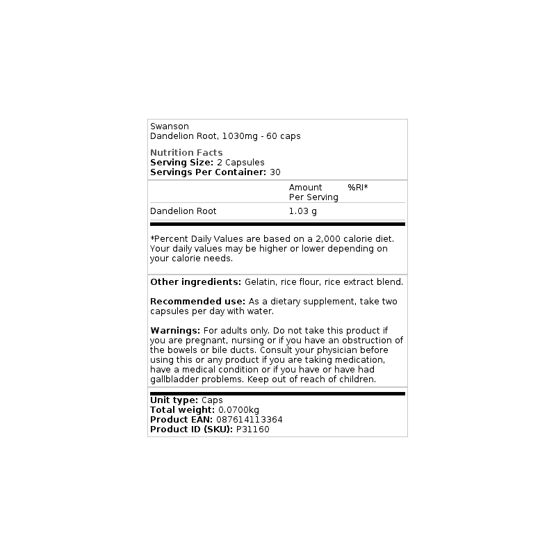Dandelion Root, Radacina de Papadie, 515 mg, 60 capsule, Swanson Radacina de papadie este o sursă bogată de vitamina A, C, D, vitamine din complexul B precum şi de minerale cum ar fi fierul, potasiul şi zincul, fiind un aliat de încredere în tratarea şi