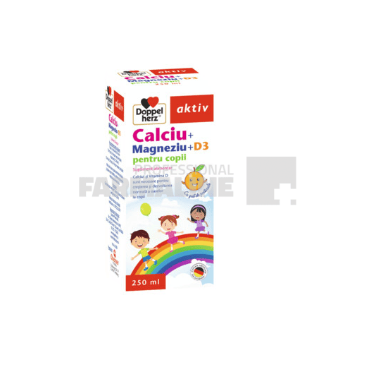 DescriereÎn cadrul alimentației, toate elementele nutritive sunt importante, fiind esențiale pentru numeroase funcții în organism. Necesarul de nutrienți poate fi crescut în cazul unei diete alimentare dezechilibrate sau în situații deosebite, precum: perioadele de creștere în cazul copiilor și adolescenților sau practicarea sportului de către aceștia, ceea ce implică efort fizic intens și consum energetic ridicat.Astfel, un aport alimentar corect și echilibrat este esențial și ar trebui asigurat în permanență. Prin urmare, adulții ar trebui să fie preocupați să asigure, atât lor, cât și copiilor, o dietă sănătoasă și echilibrată. Doppelherz aktiv Calciu + Magneziu + D3 pentru copii este o formă lichidă orală, ușor de administrat, cu gust plăcut, special creată pentru copii. Oferă organismului mineralele Calciu și Magneziu, oligoelementele Zinc și Mangan, precum și Vitaminele C și D, într-o formulă ușor de administrat, cu gust delicios de portocale.Combină Calciul și Magneziul cu nutrienți importanți pentru creșterea și dezvoltarea oaselor: Vitaminele D și C, Zinc, Mangan.Mod de administrareCopii cu varsta intre 3-12 ani: 10 ml pe zi, in timpul mesei principale.Adolescenti (12-18 ani): 10 ml de 2 ori pe zi, in timpul meselor principale.Varsta de la care se poate administra produsul si dozele se pot modifica, conform recomandarii medicului sau farmacistului.ProducatorDoppelherz Mod de prezentare Flacon 250 ml