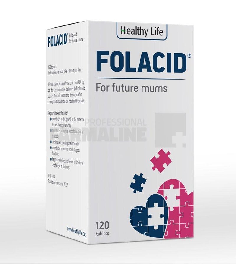 DescriereAcidul folic din Folacid este un complex de vitamina B solubil în apă. Folacid conține o doză zilnică de 400 μg de acid folic, care ajută la procesele normale ale corpului și în special la producerea și întreținerea celulelor.Folacidul poate fi adecvat pentru deficitul de acid folic și anumite tipuri de anemie (lipsa globulelor roșii) cauzate de deficiența de acid folic.Administrarea regulată de Folacid:- contribuie la formarea normală a sângelui în organism;- favorizează întărirea imunității;- contribuie la funcția psihologică normală;- ajută la reducerea senzației de oboseală și oboseală în organism;- contribuie la creșterea țesuturilor materne în timpul sarcinii.CompozitieAcid folic – 400 microgrameMod de administrareUn comprimat pe zi.ProducatorHealthy LifeMod de prezentareFlacon 120 comprimate