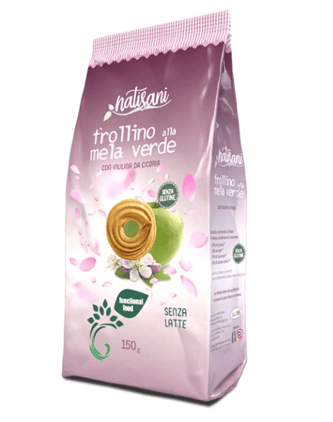 Frollino biscuiti cu mar verde, eco-bio, 150g – Natisani Aliment functional, imbogatit cu inulina de cicoare. Efectul benefic este obtinut prin consumarea zilnica a 12g de inulina- cantitate continuta de 4 biscuiti. Alimentele functionale sunt acele alim