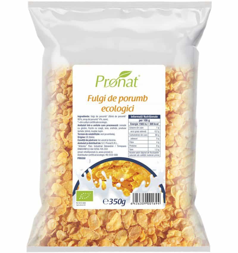 Alimente bio, Fulgi de porumb Bio, 350g, Pronat