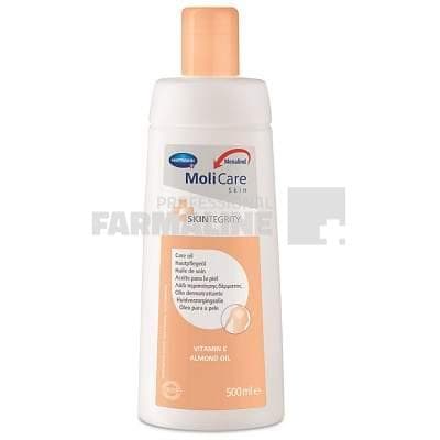 DescriereHartMann MoliCare Skin ulei pentru hidratarea si ingrijirea optima a pielii, contine uleiuri naturale si vitamina E, esentiale pentru sanatatea pielii. Produsul este usor de aplicat si se poate folosi pe suprafata intregului corp, exceptie facand zona genitala.Beneficii: – ingrijire intensiva si vitalizare pentru pielea foarte uscata, iritata;- ideal pentru stimularea circulatiei sangvine prin masajul pe piele;- hidratare avansata datorita continutului bogat in uleiuri naturale si vitamina E;- reface structura pielii deshidratate, aspre, uscate si descuamate.Mod de administrareSe aplica pe intreaga suprafata a corpului si se maseaza delicat pielea, pana ce uleiul este absorbit in totalitate. Se utilizeaza pe pielea curata.ProducatorHartmannMod de prezentareFlacon 500 ml
