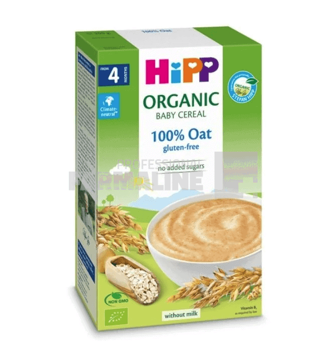 DescriereFoarte important! Laptele matern este cea mai bună hrană pentru copilul tău. Se recomandă alăptarea exclusivă cu lapte matern pentru sugarii cu vârsta de până la 6 luni.Cereale fără lapte în compoziție, în forma instant. Potrivite ca masă pentru copiii care au început diversificarea, în completarea alăptării sau hrănirii cu biberonul.Cereale valoroase, de calitate ecologică, ușor de digerat (conțin gluten)Cu vitamina B1 (conform legii) – sprijină sistemul nervosFără adaos de zaharuri – ingredientele conțin în mod natural zahărFără lapteFără arome, adaos de coloranți* și conservanți* / * conform legiiAmbalat în atmosferă protectoare.Compozitie100% făină de ovăz integral*, vitamina B1.*din producție ecologică (HR-EKO-07) (Agricultura UE/non-UE)Mod de administrareVă rugăm respectați instrucțiunile de preparare și de utilizare întocmai! Prepararea, depozitarea și utilizarea necorespunzătoare a produsului pot afecta sănătatea copilului dumneavoastră.ProducatorHippMod de prezentareCutie 200 g