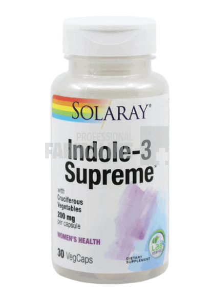 DescriereAsociere de extracte ce ofera proprietati superioare pentru modularea metabolismului estrogenilor si a efectului lor la nivelul aparatului genital feminin si masculin. Avantaje: asociere complexa de extracte standardizate (Indole-3 Carbinol,200mg/capsula ), extracte de rozmarin, crucifere si vitamine cu efect sinergic, capsule vegetale recomandate in dietele vegetariene/vegane. Reduce legarea estrogenilor pe receptorii celulari specifici din diferite tesuturi in afectiuni cu stimul estrogenic (efect antagonist estrogenic). Regleaza metabolismul estrogenilor endogeni. Reduce actiunea enzimei aromataza care transforma testosteronul in estrogeni. Stimuleaza apoptoza celulelor cu diviziune necontrolata sau afectate de virusuri care modifica ADN-ul celular.CompozitieIndole-3 carbinol – 200mg, broccoli – 50mg, varza de bruxelles – 50mg, varza, rozmarin – 25mg, vitamina C – 120mg, vitamina E – 25UI, lecitina – 20mg.Mod de administrareCate 1 capsula/zi la masa sau conform recomandarii consultantului de specialitate.ProducatorSecomMod de prezentareFlacon 30 capsule