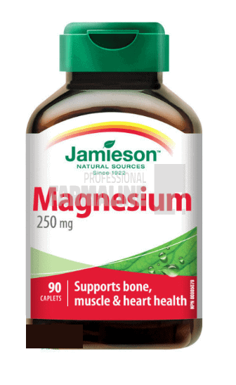 DescriereContribuie la mentinerea sanatatii sistemului osos si la functionarea normala a sistemului muscular.Nu contine sare (NaCl), gluten, lactoza, conservanti, arome sau coloranti artificiali. Poate fi utilizat si de catre vegetarieni.CompozitieMagneziu 250 mg( oxid de magneziu, gluconat de magneziu,lactat de magneziu).Mod de administrareAdulti: 1 comprimat acoperit pe zi.ProducatorJamiesonMod de prezentareFlacon 90 comprimate