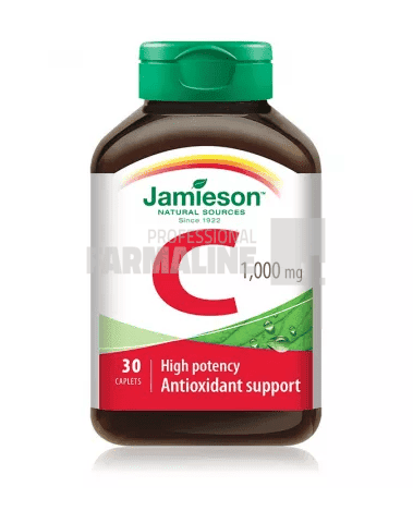 DesriereSupliment alimentar.Vitamina C contribuie la formarea normala a colagenului pentru functionarea normala a vaselor de sange, a sistemului osos, a ingredientelor, gingiilor, pielii si dintilor, la functionarea normala a sistemelor imunitar si nervos, la metabolismul energetic normal, la protejarea celulelor impotriva stresului oxidativ, la mentinerea sanatatii psihice si la reducerea oboselii si extenuarii.Nu contine gluten, arome, conservanti sau coloranti artificiali.Poate fi utilizat si de catre vegetarieni.CompozitieAcid ascorbic; agenţi de încărcare: celuloză microcristalină şi carboximetilceluloza de sodiu reticulata; agenţi antiaglomeranţi: stearat de magneziu vegetal, dioxid de siliciu coloidal si acid stearic vegetal; agenţi de glazurare: hidroxipropilceluloza, hidroxipropilmetilceluloza; ceară Carnauba; complex vegetal cu rol de suport: rutin (fructe de Dimorphandra mollis), hesperidină din fructe de Portocal- dulce (Citrus sinensis), bioflavonoide extrase din coajă de Lămâie (Citrus limon), extract 4:1 din fructe de Acerola (Malpighia glabra) extract din fructe de Măceş (Rosa canina)Vitamina C (Acid ascorbic)Mod de administrareAdulti: 1 comprimat pe zi.ProducatorJamieson LaboratorieMod de prezentareFlacon cu 30 capsule