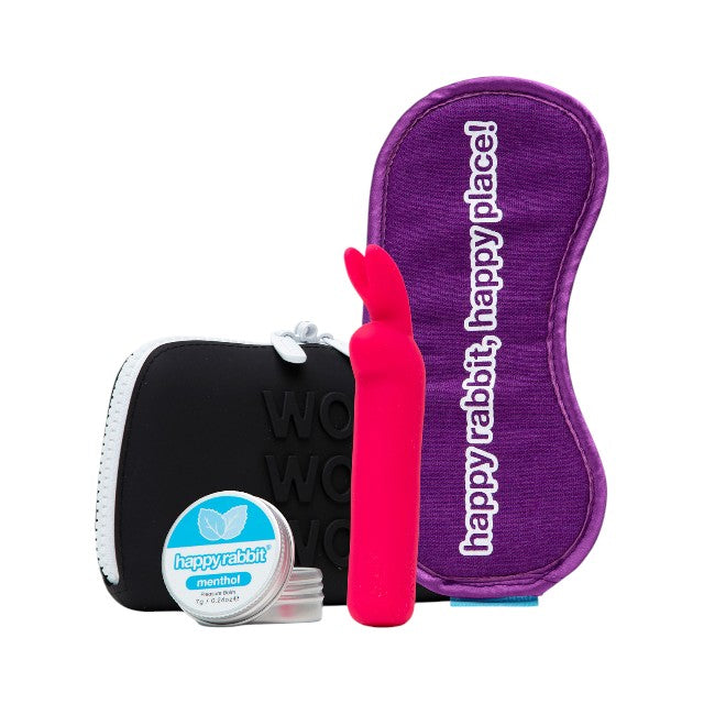 Kit HAPPY RABBIT Clitoral Pleasure Kit, pentru jocuri erotice, cu vibrator bullet și mască pentru ochi, geantă de călătorie inclusă Dacă ești în căutarea unui set complet pentru stimulare clitoridiană intensă, HAPPY RABBIT Clitoral Pleasure Kit este alegerea perfectă! Acest kit de 4 piese este creat special pentru a amplifica plăcerea, fie că îl folosești singură sau împreună cu partenerul tău. Ideal pentru seri fierbinți sau escapade de weekend, acest set îți oferă tot ce ai nevoie pentru experiențe electrizante. Ce găsești în acest kit senzual?