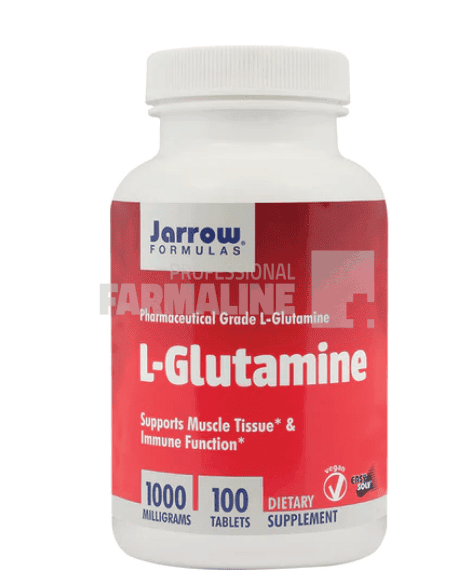DescriereGlutamina, aminoacid semiesential, poate fi sintetizata de organism dar, in perioade de stres, traume, efort fizic si intelectual este necesar aportul din exterior. Este prezenta in fiecare celula a organismului uman. In cantitatea cea mai mare se afla in muschi, sange, fluidul cerebrospinal, plamani si in tractul digestiv.Protejeaza neuronul de toxicitatea glutamatului si a amoniacului in exces.Mentine echilibrului alcalin in organism (regleaza pH-ul) si previne hipoglicemia (in ficat glutamina se transforma usor in glucoza cand nivelul sanguin al acesteia scade).Protejeaza creierul in afectiuni neurodegenerative (boala Parkinson, maladia Alzeimer, epilepsie, schizofrenie, senilitate, deficit de atentie, scleroza multipla).Mod de administrare1 – 4 tablete / zi cu lichide reci sau conform recomandarii medicului de specialitateProducatorSecomMod de prezentareFlacon 100 tablete