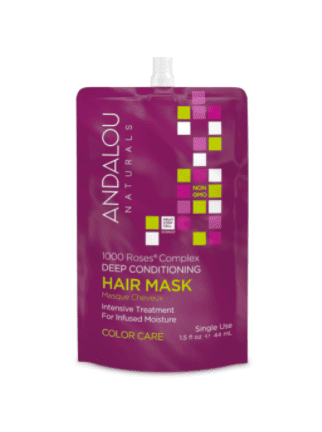 Masca intensiva pentru par, 1000 Roses Complex Color Care Deep Conditioning Hair Mask, 44ml – Secom – Andalou Complexul de celule stem din trandafir alpin creste rezistenta firului de par, in timp ce uleiurile de rodie si macese il hidrateaza si ii ofera