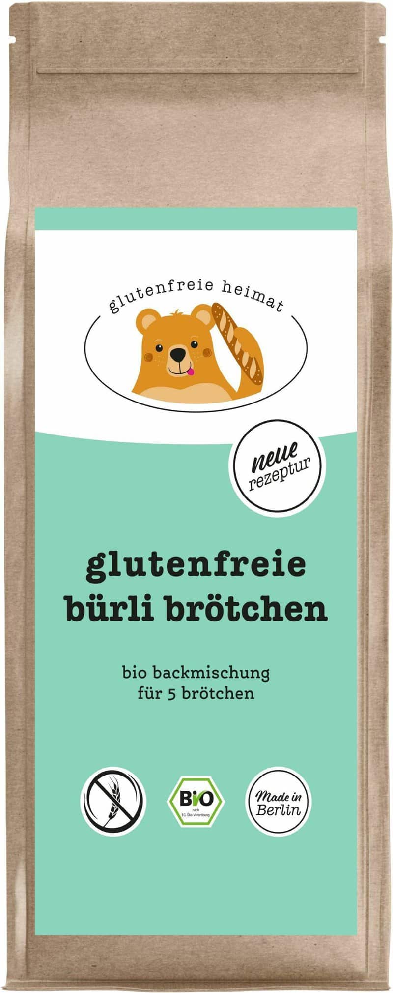 Mix pentru chifle Burli, fara gluten, eco-bio, 270 g – Glutenfreie Heimat Pur si simplu framantati amestecul de copt cu apa, lasati sa creasca timp de 1 ora sau peste noapte si apoi asezati bucatile de aluat intr-o tava de copt. Dupa 25 de minute de coac