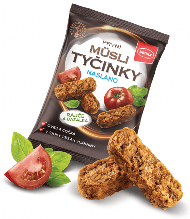 Musli snacks cu rosii si busuioc, CRUNCHY STICKS, fara gluten, 55g – Semix