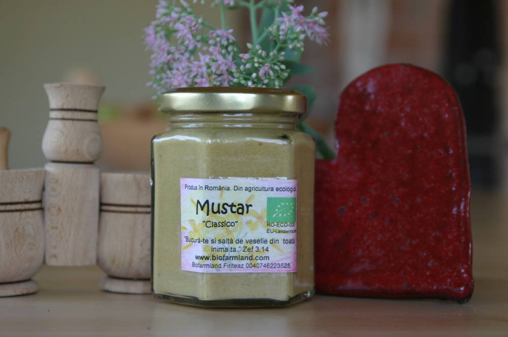 Mustar classico BIO 200ml – Biofarmland Mustarul BIO classico este recomandat de Terra Natura Mustar produs la ferma ecologica si sustenabila BIOFARMLAND din localitatea Firiteaz, judetul Arad. Mustarul Biofarmland este manufacturat in cantitati mici – i
