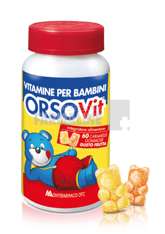 DescriereOrsovit ® este un supliment alimentar pentru copiii care conțin Vitamine A, C, B12, B6, D și acid folic care contribuie la funcționarea normală a sistemului imunitar și biotină, niacină, vitaminele C, B12 și B6 care contribuie la metabolismul energetic normal. Fara gluten.Orsovit ® este indicat copiilor cu vârsta peste 3 ani care au un aport dietetic redus de vitamine sau o nevoie fiziologică crescută în urma modificărilor sezonului.CompozitieVitamina A, Vitamina D, Vitamina E.Vitamina C, Niacina, Biotina, Vitamina B12, Vitamina B6, Acid Folic.Mod de administrareDoza recomandată este de 1-2 Orsovit pe zi.ProducatorMontefarmacoMod de prezentareFlacon 60 bomboane
