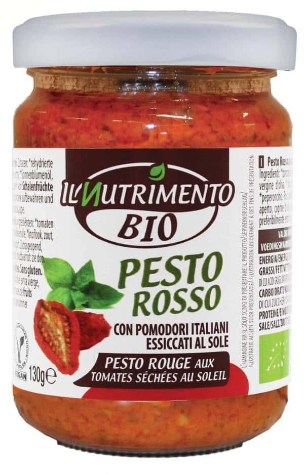 PESTO ROSU CU ROSII USCATE, eco-bio, 130g, Probios Cu ingrediente italienesti Ingrediente: rosii rehidratate 54% (* rosii uscate 66% apa * vin) * ulei de masline extravirgin * ulei de floarea soarelui * usturoi sare * capere 1.9% * busuioc 1.5% * chili.
