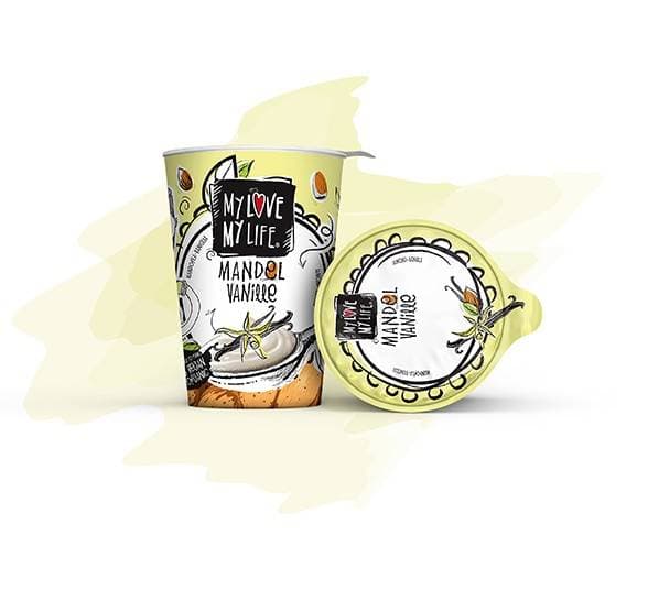 PREPARAT FERMENTAT CU VANILIE SI MIGDALE, ECO-BIO, 180G – MY LOVE MY LIFE Puțin mai mic…..dar cu gust mare: alternativele la iaurt pe bază de migdale fructate în arome de zmeură, mango și vanilie în cani practice de 180g. Iaurturile cu fructe sunt perf