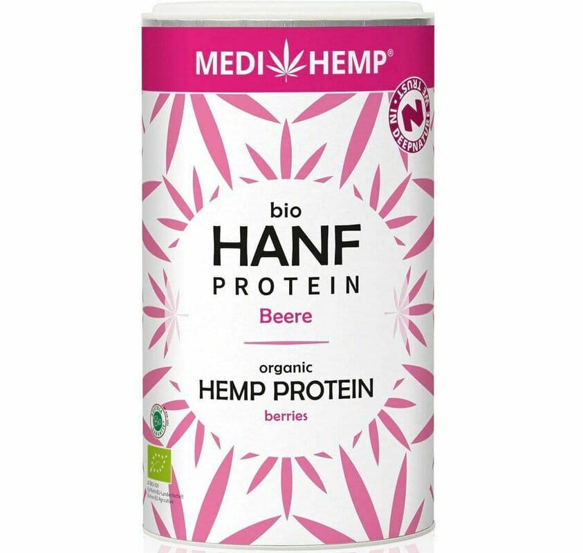 Proteina din canepa cu fructe, eco-bio, 180g, Medihemp O sursa naturala, bio, pentru a sustine aportul zilnic de proteine. Ingrediente: proteina de canepa* 46.7%, faina de orez*, zmeura* 16.7%, afine* 16.7%*din agricultura ecologica Valori nutritionale/1