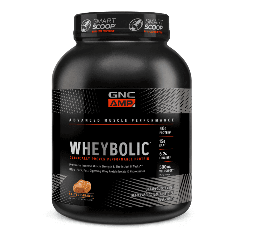 Suplimente pentru sportivi, Proteina din zer cu aroma de caramel sarat Wheybolic AMP, 1312.5g, GNC