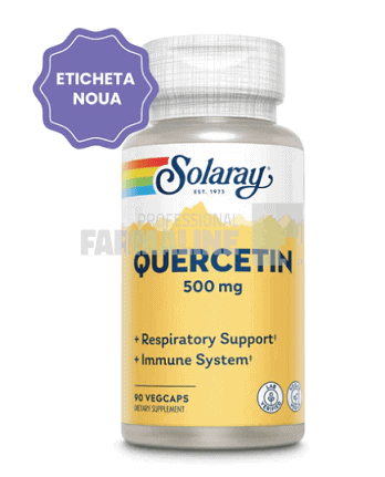DescriereSupliment alimentar Quercetin 500mg, Solaray, 90 capsule vegetale, antioxidant natural ce sustine echilibrarea manifestarilor alergice.Antioxidant natural cu rol in echilibrarea manifestarilor alergice si in protectia sistemului respirator.echilibrarea manifestarilor caracteristice reactiilor alergice precum: nas infundat, ochi inlacrimati, stranut, respiratie dificila, inrosirea pielii, manifestari digestive declansate de polen, praf, par de animale, produse chimice etc.:sustine limitarea eliberarii unor compusi precum histamina, leucotriene, prostaglandine, la nivel vascular, gastrointestinal, bronsic, cutanat, cerebral, ocularfavorizeaza stabilizarea membranelor celulare, inclusiv a celor mastocitaresustinerea sanatatii sistemului vascular, prin:mentinerea structurii normale a capilarelorsuport in protejarea structurii celulelor endoteliale vasculare in fata actiunii radicalilor liberimentinerea presiunii arteriale normalesustinerea nivelului normal de colesterol in sange si a procesului de agregare plachetara in parametri normalimentinerea permeabilitatii normale a mucoasei intestinale si a functiei de bariera a intestinului:favorizeaza secretia normala de acid gastric si mentine rata normala de peroxidare a lipidelor celulelor gastricesustinerea nivelului si activitatii normale a anumitor enzime implicate in procesele de la nivelul retinei, pancreasului, prostatei, articulatiilor oaselor, creieruluisustinerea functionarii normale a sistemului imunitarfavorizarea nivelului normal de glucoza prin sustinerea activitatii normale a enzimei aldoz reductaza (enzima implicata in metabolizarea glucozei in sorbitol)mentinerea structurii celulelor in fata actiunii radicalilor liberi (actiune antioxidanta)sustinerea limitarii depunerilor de grasime la nivel hepatic sau visceral si echilibrarea nivelului de molecule inflamatorii produse de tesutul adipossuportul capacitatii de adaptare la stres, prin:mentinerea unui nivel echilibrat de neurotransmitatori la nivel cerebralsuport in reglarea eliberarii normale de cortizol (hormon secretat in perioadele de stres)sustinerea activarii receptorilor GABA-A (GABA: neurotransmitator inhibitor)echilibrarea nivelului de acid uric prin favorizarea reducerii enzimei xantin oxidaza, enzima care participa la sinteza acidului uricCompozitieQuercitina, cantitate 500 mg.Mod de administrareCate 1 capsula de 2 ori pe zi, la masa, cu 200ml de apa sau conform recomandarii medicului specialist.ProducatorSecomMod de prezentareFlacon 90 capsule