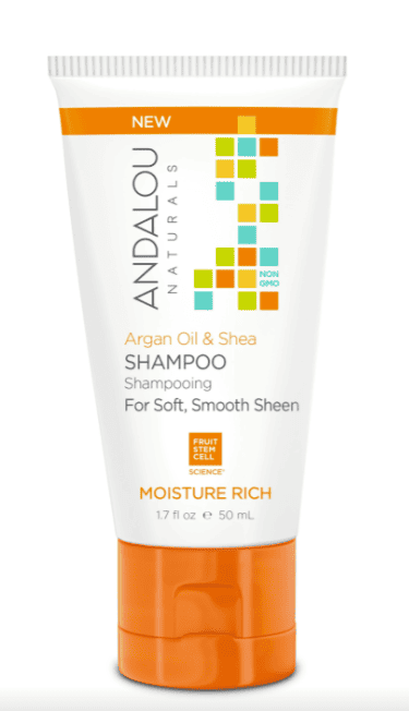 Sampon pentru par uscat, Argan Oil and Shea Moisture Rich Shampoo, 50ml – Secom – Andalou Complexul de celule stem din fructe si uleiul de argan contribuie la hranirea in profunzime si refacerea structurii firului de par, in timp ce untul de shea ii conf