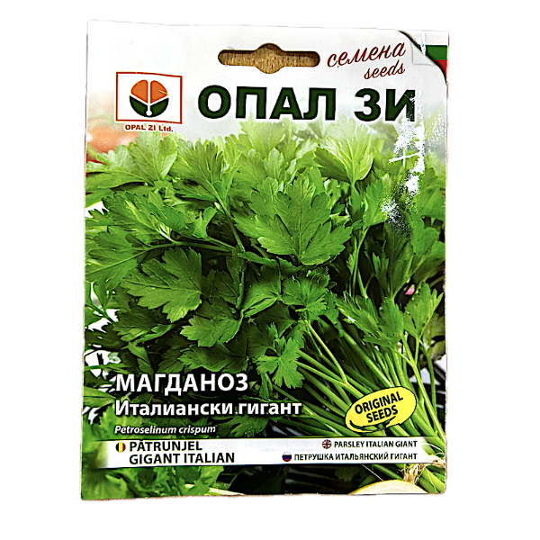 Seminte patrunjel Gigant Italian 5 gr, OpalZi Bulgaria. Soi timpuriu foarte productiv. Frunzele au o aroma puternica, sunt late, lucioase, si au culoarea verde închis. Pentru consum in stare proaspata, precum ca si condiment uscat. Numărul de seminte intr-un gram: 600.