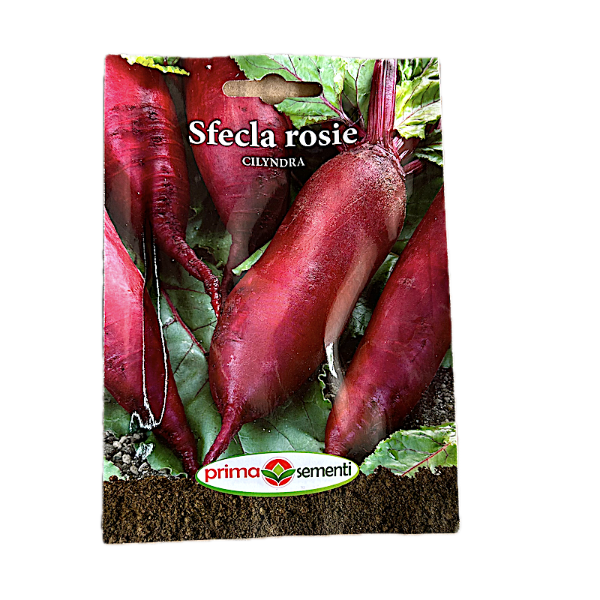 Seminte sfecla rosie Cilyndra 5 gr, Prima Sementi. Soi timpuriu, productiv cu radacini cilindrice, de culoare rosu inchis.