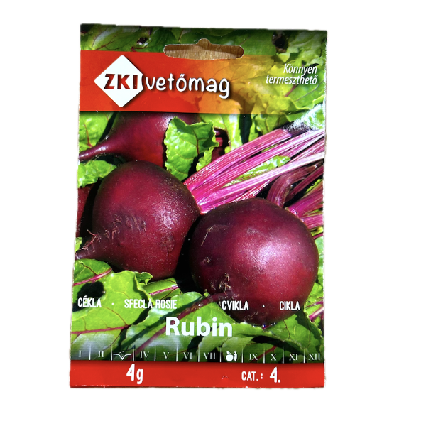 Seminte sfecla rosie Rubin 4 gr, Zki. Soi cu perioada de vegetatie 90-110 zile. Se poate cultiva afat ca si cultura principala cat ca si cultura succesiva. Rădăcinile sunt globuloase de mãrime medie, de culoare rosu închis. Se recomanda pentru prelucrare. (Plicul confine 230-280 seminte.)
