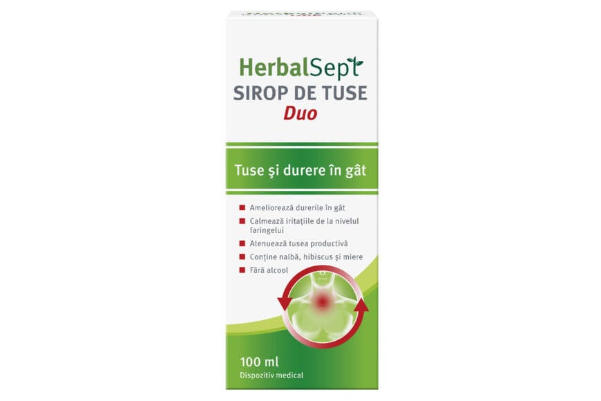Prin intermediul extractelor naturale din plante de calitate superioara – nalba, hibiscus si miere – siropul HerbalSept Duo calmeaza iritatiile de la nivelul mucoasei faringiene si bucale. Ingredientele sale active imbraca mucoasa tractului respirator superior asemenea unui balsam, protejand-o impotriva altor atacuri.