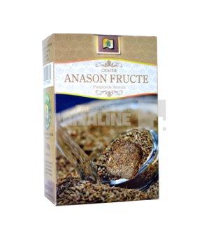 DescriereAnasonul face parte din familia Apiaceae, fiind o plantă aromatică, erbacee, anuală, heliofilă, care preferă clima caldă. Cultivat din timpuri îndepărtate în Asia Mică, a fost răspândit ulterior atât în Europa cât şi pe alte continente. Planta are frunze puţine şi rare, florile mici şi de culoare albă fiind dispuse sub formă de umbrelă. Fructele sunt mici şi verzi, putând fi culese de la sfârşitul lunii august până la sfârşitul lunii septembrie. Se mai numeşte anason românesc, anis, anos, bădean, chimion de grădină, hanos, molotru, oniş, secărea.Acest ceai de anason are urmatoarele actiuni:Tonic digestiv, antispastic, diuretic, aperitiv, vermifug, emenagog (declanşează ciclul menstrual), galactogog, stimulează secreţiile glandulare (salivare, gastrice, intestinale, biliare, mamare), estrogenic, acţioneaza asupra lobului anterior al hipofizei, carminativ, eupeptic; în doze mici este expectorant, iar în doze mari este antiseptic, stopând procesele fermentative de la nivelul intestinului gros.Contribuie la:– funcţionarea normală a sistemului digestiv prin:– reducerea spasmelor şi a balonării care apar la nivelul intestinului (la copii şi adulţi)– îmbunătăţirea digestiei şi creşterea poftei de mâncare– normalizarea secreţiilor digestive: gastrice, pancreatice, intestinale şi biliare– normalizarea secreţiei de lapte la lăuze– menţinerea sănătăţii arborelui bronşic.Acest ceai de anason se utilizează ca adjuvant în: colici intestinale, balonare, colici abdominale la sugari, anorexie (lipsa poftei de mâncare), insuficienţă pancreatică, indigestii, pentru mărirea secreţiei de lapte la lăuze, dismenoree, dureri menstruale, bronşite, tuse spastică, astm, gripă, astenie, vomă psihogenă, viermi intestinali.CompozitieUlei volatil bogat in anetol, aldehida anisica, colina, cetone.Mod de administrareInfuzie (adulti 1/2 lingurita la cana , sugari 5 – 6 fructe la 100 ml. apa) se bea o cana pe zi in mai multe reprize.Infuzia se prepară în fiecare zi, nu se păstrează de pe o zi pe alta.ProducatorStefMarMod de prezentareCutie 50 g