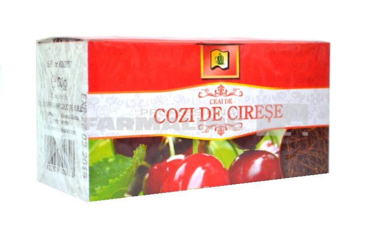 DescriereCozile de cireşe sunt recunoscute drept unele dintre cele mai eficiente diuretice naturale, calitate ce le recomandă ca adjuvant în zeci de boli. „Proprietăţile medicinale ale cozilor de cireşe se datorează sărurilor de potasiu, flavonoidelor (n.r. – substanţe cu efect puternic antioxidant), taninurilor şi catechinicilor (n.r. – substanţe cu proprietăţi antioxidante)”, explică doctorul în farmacie Ovidiu Bojor din Bucureşti.CompozitieCeai cozi de cirese: pedunculii arborelui fructifier Cerasum avium L., fam. Rosaceae, care contin saruri de potasiu, taninuri, flavone.Mod de administrareSe beau 2-3 cani cu ceai pe ziProducatorStefMarMod de prezentareCUtie cu 20 plicuri
