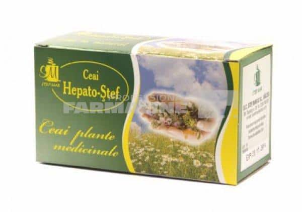 DescriereSupliment alimentar pentru sustinerea sistemului hepato-biliar.Coleretic-colagog, antispastic, antiseptic, antiinflamator, antimicrobian.CompozitieFlori de Galbenele (Calendula officinalis) – , frunze de Anghinare (Cynara scolymus) – , parti aeriene de Rostopasca (Chelidonium majus) – , flori de Musetel (Matricaria chamomilla) – , fructe de Armurariu (Silybum marianum) – , frunze de Menta (Mentha piperita) – , scoarta de Crusin (Rhamnus frangula)Mod de administrareSe pun 1-2 pliculete in 250 ml apa clocotita si se lasa 10-15 minuteProducatorStefMarMod de prezentareCutie cu 20 plicuri