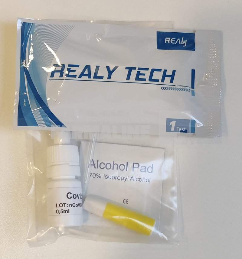Test rapid COVID-19 Anticorpi (IgG/IgM) Doar pentru uz profesionalTestul Rapid IgG / IgM 2019-nCoV este un test rapid imunocromatografic combinat cu flux lateral pentru detectarea slmultana a anticorpilor IgG si IgM la SARS-COV-2 in sange integral, ser sau plasma umana.Casetele prezinta 3 regiuni specifice pe membrana: o regiune ce corespunde liniei de control pentru evidentierea validarii testului, o regiune captusita cu antigen anti-SARS-Cov-2 IgM si o regiune captusita cu anti-SARS-Cov-2 IgG.Daca proba contine anticorpi IgG nCoV 2019, o linie colorata va aparea in regiunea liniei de testare IgG. Daca proba contine anticorpi IgM nCoV 2019, o linie colorata va aparea in regiunea liniei de testare IgM. Daca proba nu contine anticorpi 2019-nCoV, nu va aparea nicio linie colorata in niciuna dintre regiunile liniei de testare, ceea ce indica un rezultat negativ. Pentru a servi drept control procedural, o linie colorata va aparea intotdeauna in regiunea liniei de control, ceea ce indica faptul ca volumul corespunzator de proba a fost adaugat si ca s-a produs permeabilizarea membranei.Instructiuni de utilizare Permiteti testului, specimenului, tamponului si / sau controalelor sa atinga temperatura camerei (15-30 ° C) anterior testarii. Scoateti caseta de testare din punga cu folie si folositi-o intr-o ora. Cele mai bune rezultate vor fi obtinute daca testul este efectuat imediat dupa deschiderea foliei.Asezati caseta pe o suprafata curata si neteda. Recoltarea probei de sange din deget:- Spalati mana pacientului cu sapun si apa calda sau curatati cu ajutorul tamponului cu alcool inclus.- Uscati mana.- Masati mana fara a atinge locul punctiei prin frecarea in jos a mainii spre varful degetului mijlociu sau inelar.- Intepati pielea cu lanceta sterila.- Stergeti primul semn de sange.- Frecati usor mana de la incheietura mainii pana la deget pentru a forma o picatura rotunda de sange peste locul punctiei. Colectati sangele cu ajutorul tubului capilar (pipeta) inclus. Umpleti tubul capilar si transferati 1 picatura de sange in godeul (S) din caseta de testare, apoi adaugati 2 picaturi de tampon si porniti cronometrul. Asteptati sa apara linia / liniile colorate. Cititi rezultatele la 10 minute. Nu interpretati rezultatul dupa 20 de minute.Interpretarea rezultatelorIgG POZITIV:* Apar doua linii colorate.O linie colorata trebuie sa apara intotdeauna in regiunea de control (C) si o alta linie ar trebui sa fie in regiunea liniei IgG.IgM POZiTIV:* Apar doua linii colorate. O linie colorata trebuie sa apara intotdeauna in regiunea de control (C) si o alta linie ar trebui sa fie in regiunea liniei IgM.IgG si IgM POzmV:* Apar trei linii colorate. O linie colorata trebuie sa apara intotdeauna in regiunea de control (C) si doua linii ar trebui sa apara, una in regiunea IgM si una in IgG.*NOTA 1:. Intensitatea culorii in regiunile liniei de testare poate varia in functie de concentratia de anticorpi 2019-nCoV prezenti in proba. Prin urmare, orice nuanta de culoare din regiunea liniei de testare ar trebui considerata pozitiva. NEGATIV: O linie colorata apare in regiunea liniei de control (CJ. Nu apare nicio linie in regiunea IgG si in regiunea IgM.•NOTA 2: La aparitia unei linii de intensitate slaba in timpul de citire de 10 minute, se recomanda citirea rezultatelor la 20 de minute.INVALID: Linia de control nu apare. Volumul insuficient al probei sau tehnici procedurale incorecte sunt motivele cele mai probabile pentru esecul aparitiei liniei de control. Examinati procedura si repetati testul cu o noua caseta. ProducatorHangzhou Realy Tech CO China