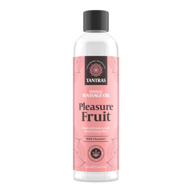 Ulei de masaj TANTRAS Pleasure Fruit, cu vitamina E și uleiuri naturale, aromă de patchouli și vanilie, 150 ml TANTRAS Pleasure Fruit este un ulei de masaj parfumat cu feromoni, conceput pentru a stimula simțurile și a crea o conexiune profund erotică între parteneri. Aroma sa captivantă de patchouli și vanilie aduce o senzație de căldură și rafinament, iar formula bogată în vitamina E și uleiuri naturale lasă pielea catifelată, hidratată și parfumată. Ideal pentru masaj erotic, preludiu sau pur și simplu pentru momente de relaxare senzuală. Caracteristici cheie